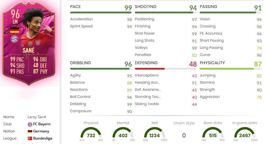 evaluations. Under his epic 99 in Pace and 96 in Dribbling top ascribes, Sané