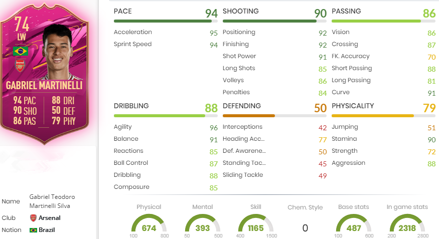Gabriel Martinelli (OVR 74)