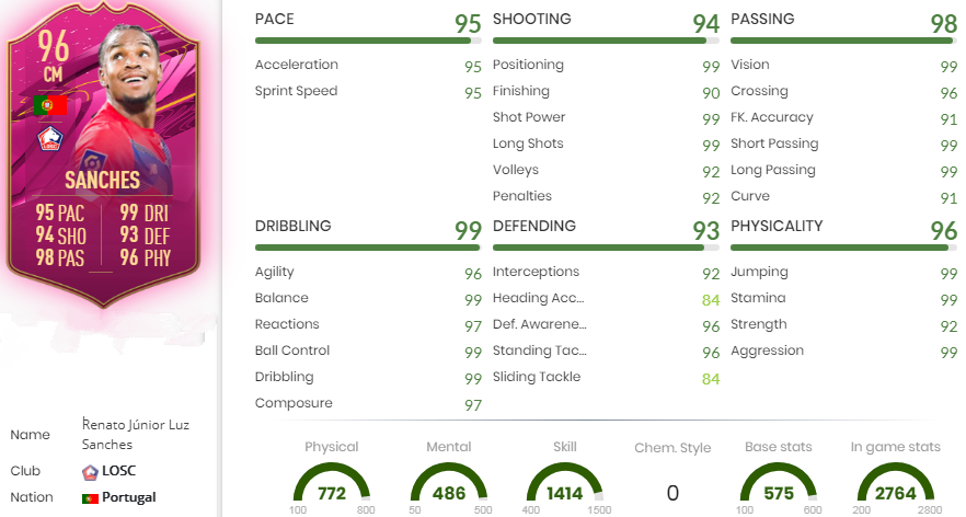 Tackle fall beneath the 90+ level. Sanches has an ideal 99 in Ball Control,