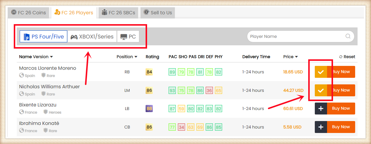 1. Please log in to your member account, select "FC 26" and click "FC 26 Players" (If you don't have an account, please sign up first).
